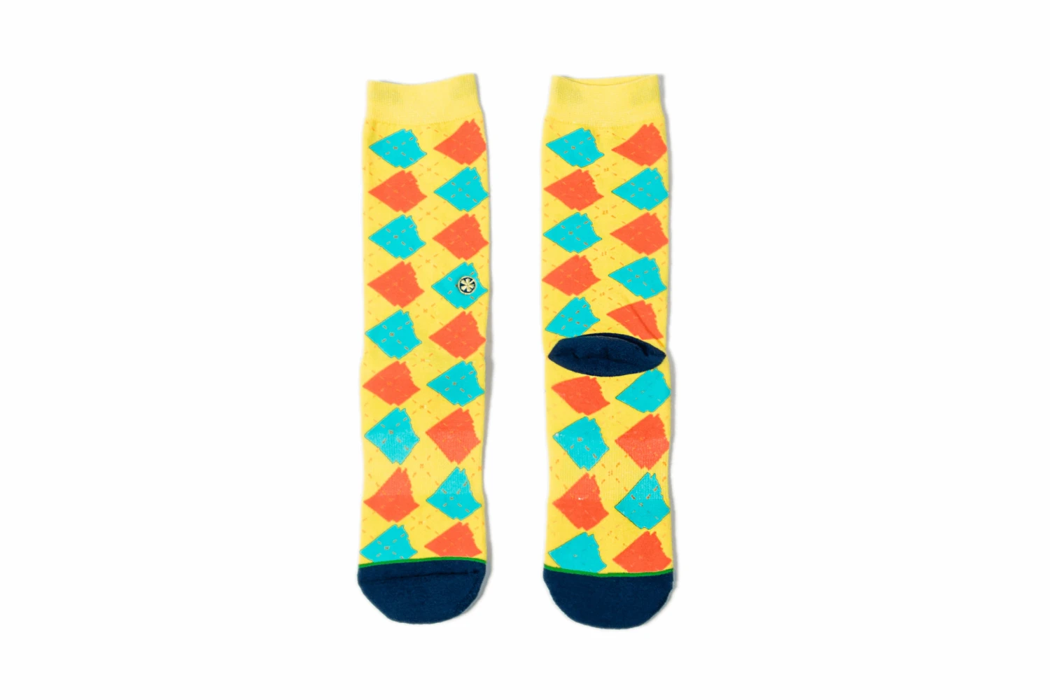 Our take on the classic argyle, the Argyle State of Mind sock features the state silhouette in several colors. This lightweight sock is built with Supima Cotton, a premium material used in the finest garments, breaths easily and maximum comfort. Available now in a standard size.
