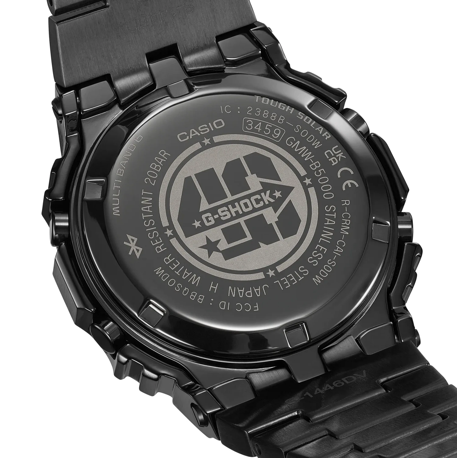 The screw-lock case back, coated in diamond-like carbon (DLC), features a logo designed by Haze to commemorate the 40th anniversary of G-SHOCK.