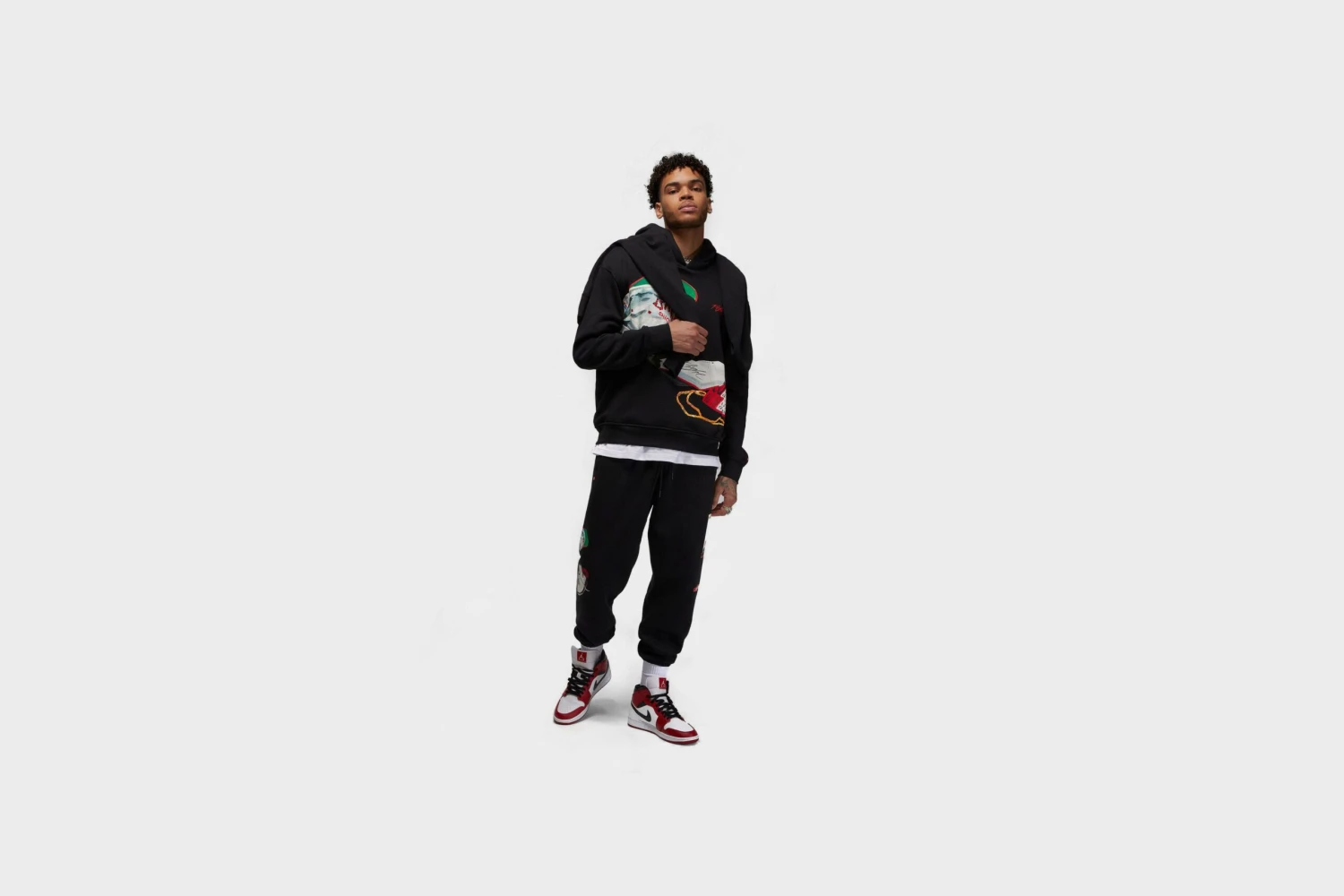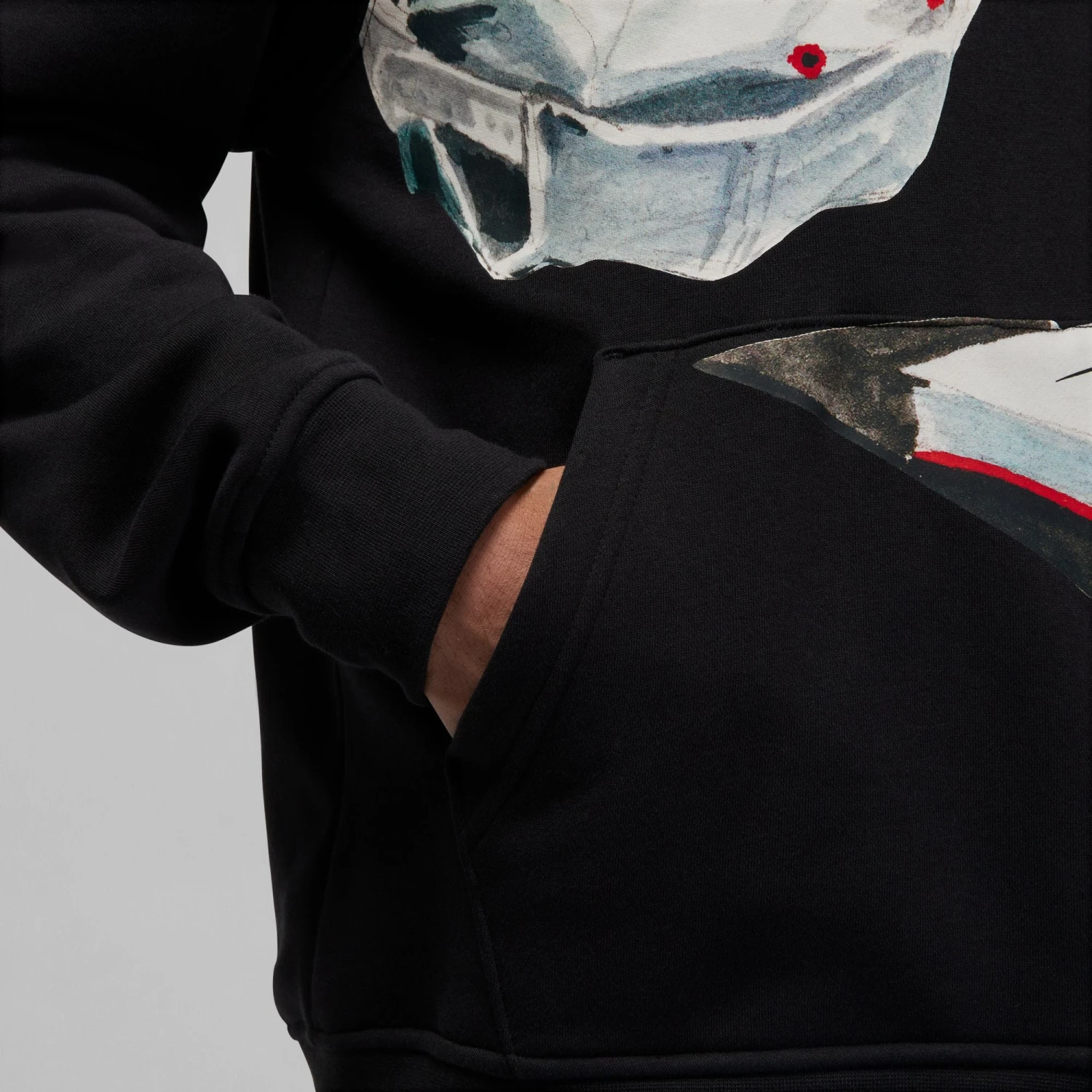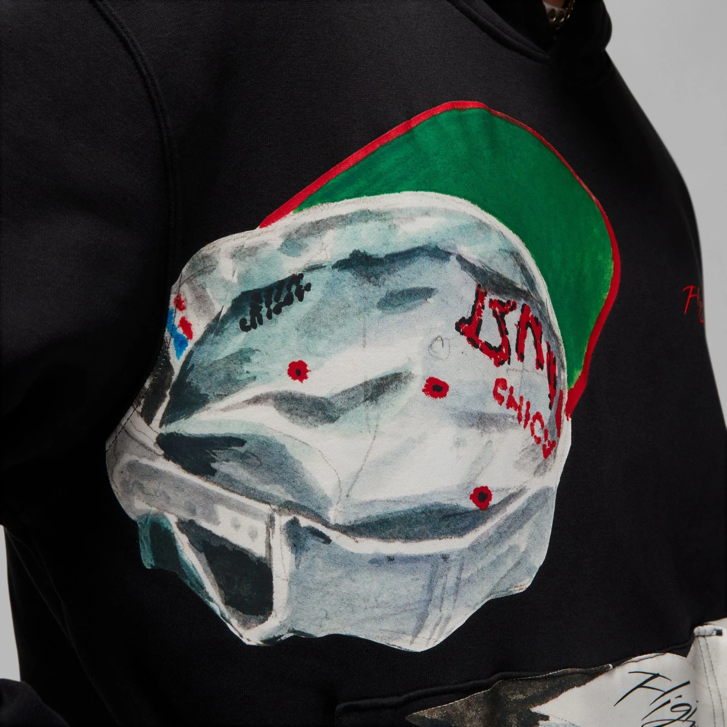 Get ready to get noticed. This fleece hoodie features the work of artist Jacob Rochester, which tells the nostalgic story of hoops culture through bold, screen printed graphics. His imagery brings energy to a classic wardrobe staple, while a subtle Artist Series pin at the cuff legitimizes your look.