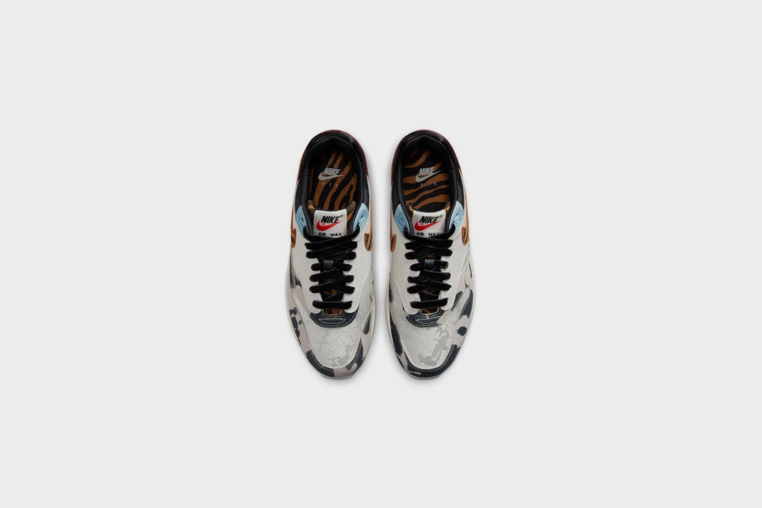 Captivating and thumping with bold prints and textures, the Air Max 1 ’87 is the statement piece every ‘fit needs. Inspired by what the hottest sneaker boutique would look like, we’ve upped the opulence with warm earth tones and unexpected patterns that nod to sophisticated upholstery and area rugs. From velvety laces to a silky black liner and icy blue outsole, these kicks take decor dominance to a brand-new level. Ready to hang?